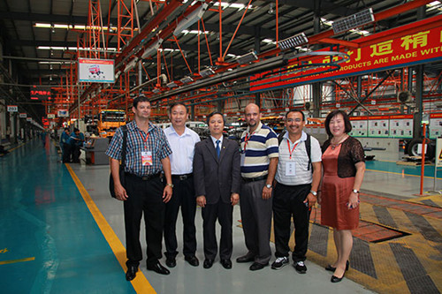 金宝搏下载网址2014年5月28日CNHTC零件行业国际贸易峰会期间TOPLED管理员MS黄二叉IMPORT和Export总经理Yang陪同访问非洲大使馆官方访问SINOTRUK群y卡车生产线